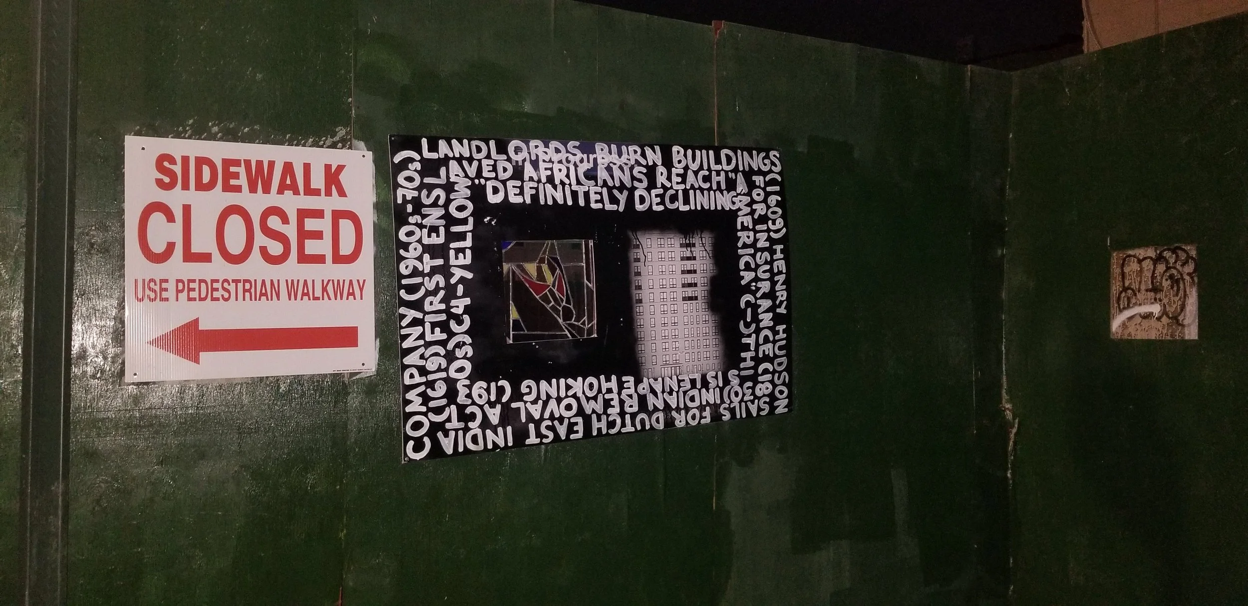 333-335 Irving. Site-specific installation, acrylic, spray paint & found construction materials